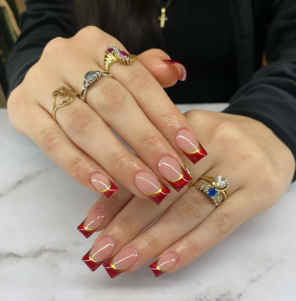 I’ve tried red nails for December parties, birthday dinners, and even random glam weekends. Every single time, gold details elevate the whole look. So if you’ve been wondering which red nails with gold design will truly stand out, let’s break them down one by one.