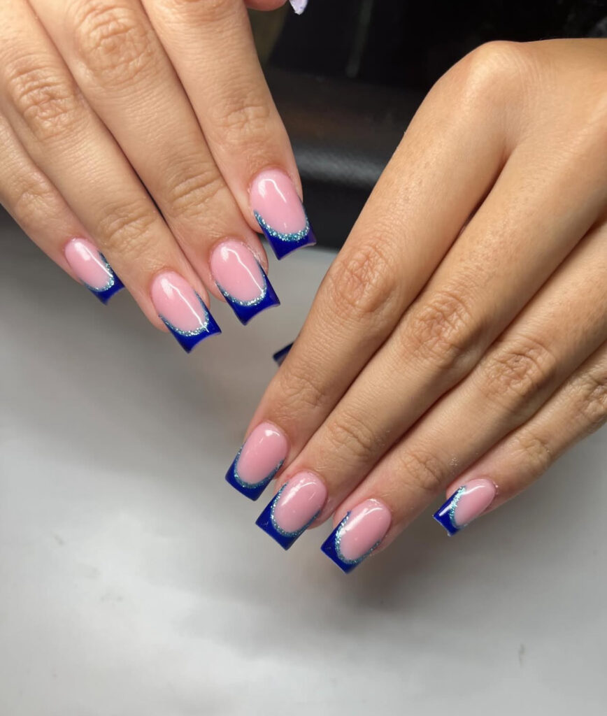 Blue French tip nails with design offer endless possibilities. You can go soft and feminine, bold and dramatic, or artistic and textured.