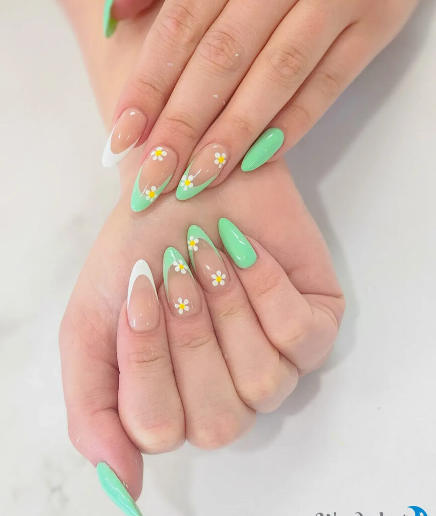 4. Choose Mint Green and White Daisy Nails